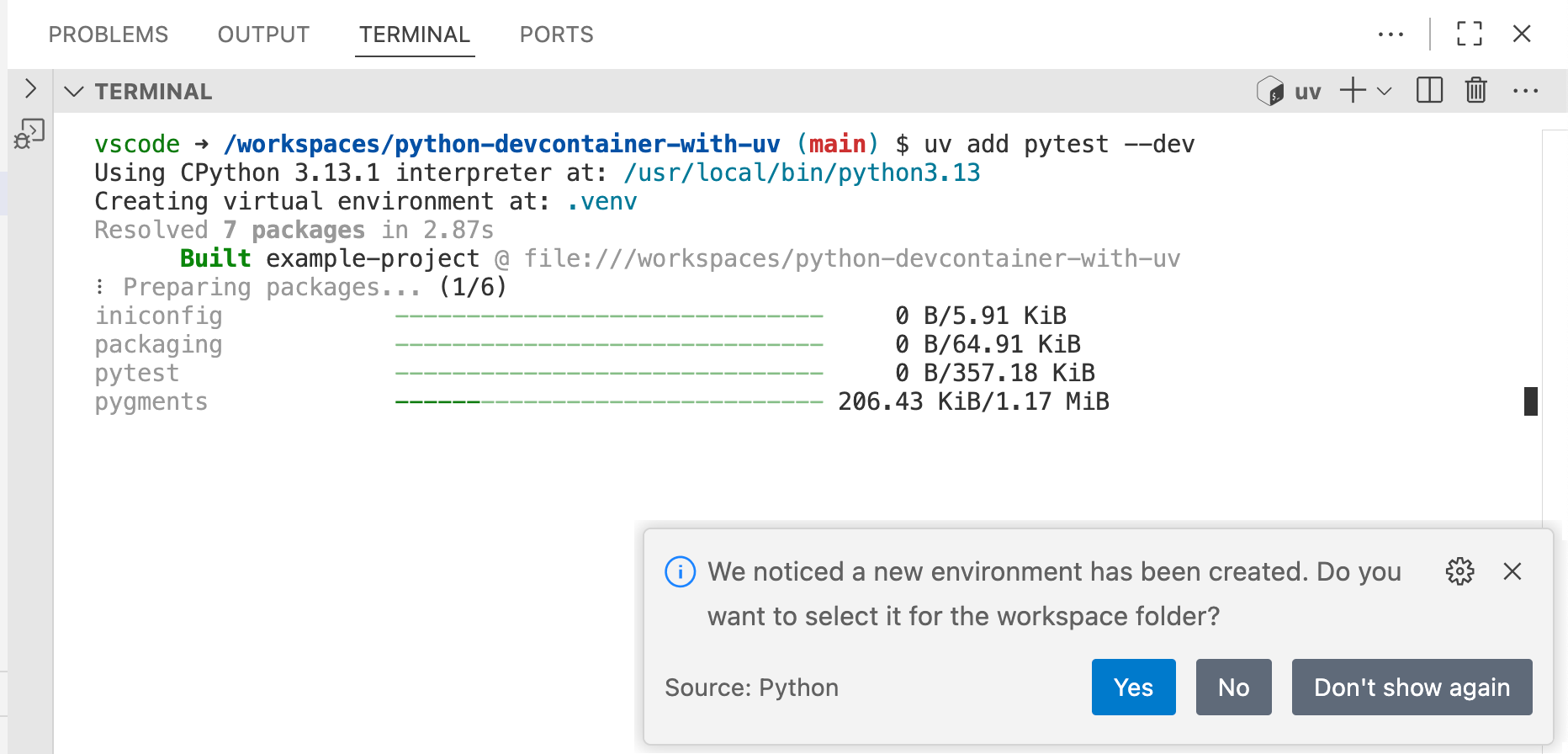 How to create a Python + uv Devcontainer