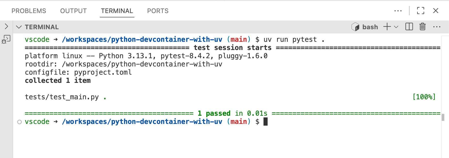 Python Devcontainer with uv