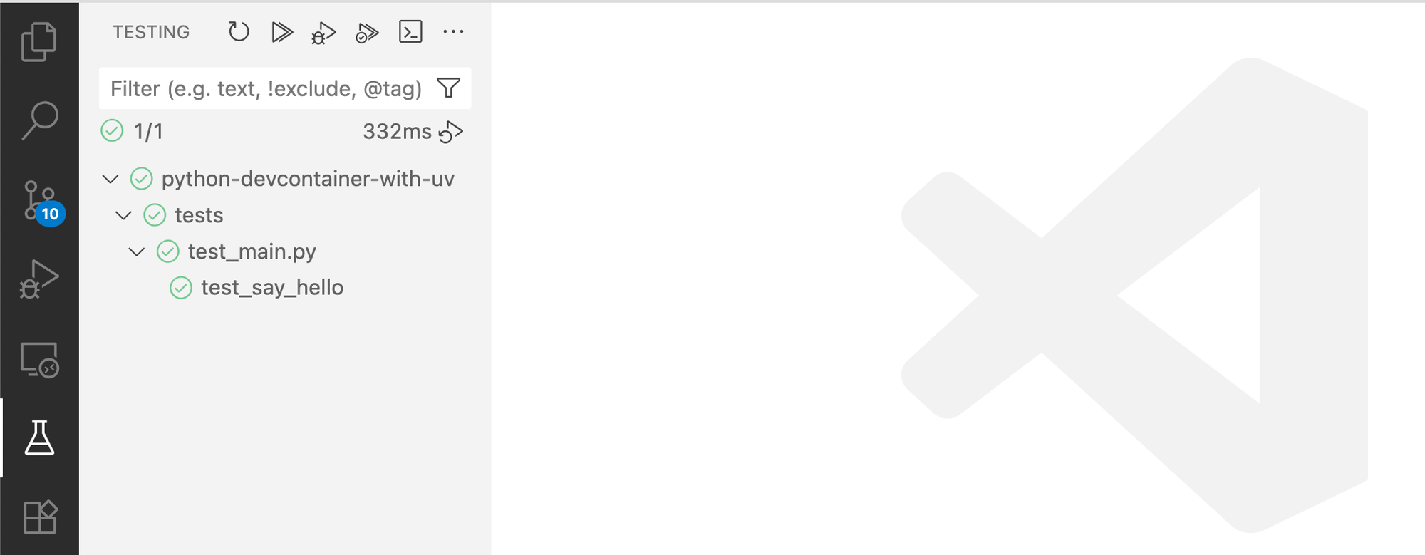 Our test passes ✓. The environment is correctly setup. Also, feel free to use the VSCode UI: